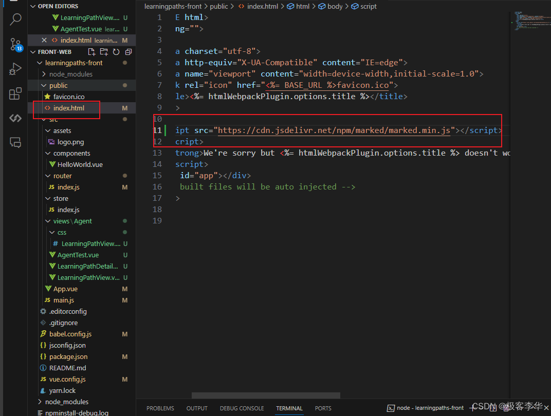 在里面加上这样的一大段话<script src="https://cdn.jsdelivr.net/npm/marked/marked.min.js"></script>