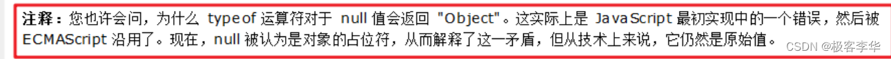 为什么打印上面的 obj变量的数据类型,结果是object;这个官方给出了解释,下面是从官方文档截的图