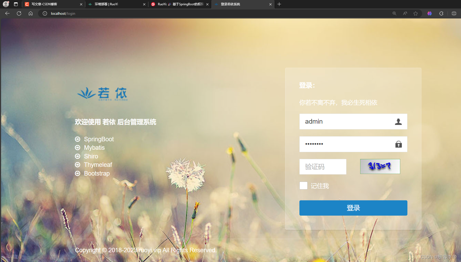 简介:本文讲解如何部署若依框架。
