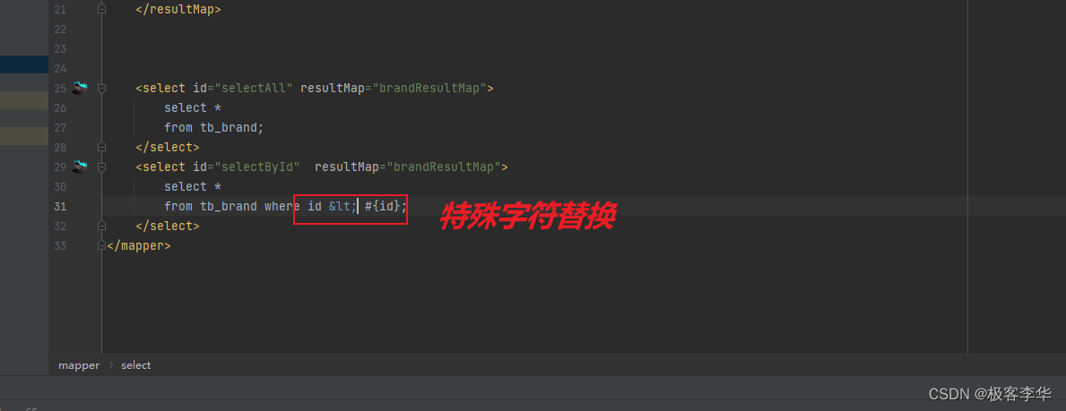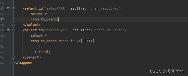 </select>注意:上述SQL中的 #{id}先这样写,一会我们再详细讲解