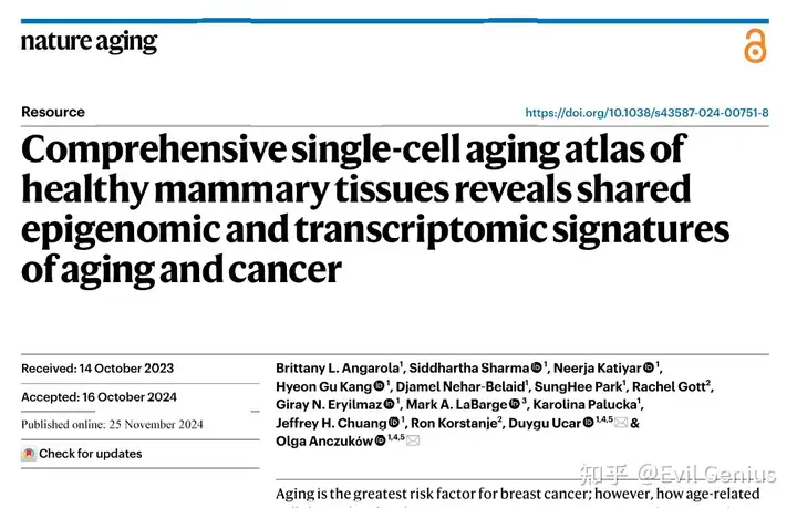 高分文献分享---健康乳腺组织的完整单细胞衰老图谱(scRNA + scATAC + Spatial)