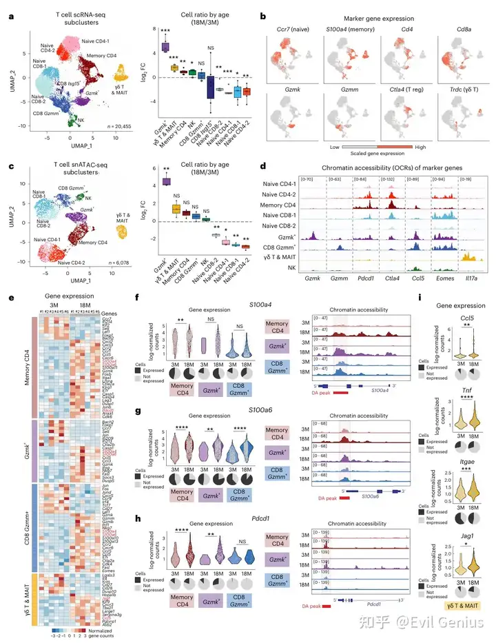 编码与癌症转移相关的趋化因子的CCL5随着年龄的增长而上调,这表明这些细胞随着年龄的增加而转变为更具炎症性和迁移性的状态。