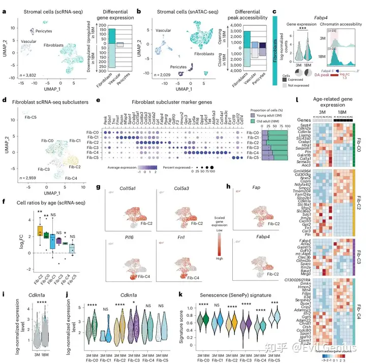 在基质中,成纤维细胞、周细胞和血管细胞显示出与年龄相关的基因表达和染色质可及性变化。