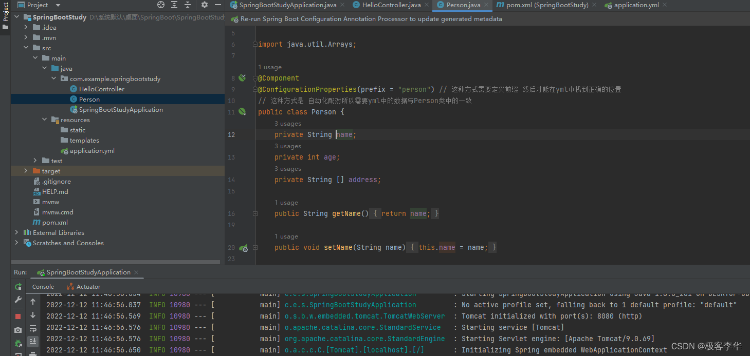 @ConfigurationProperties(prefix = "person") // 这种方式需要定义前缀 然后才能在yml中找到正确的位置