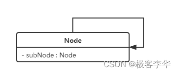 类图中用一个带有箭头且指向自身的线表示。上图的意思就是Node