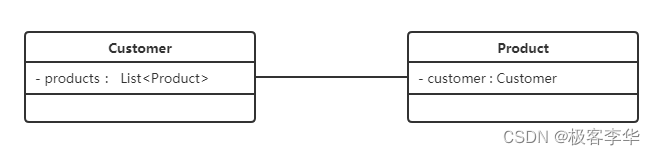 用一个带箭头的实线表示。上图表示每个顾客都有一个地址,这通过让Customer