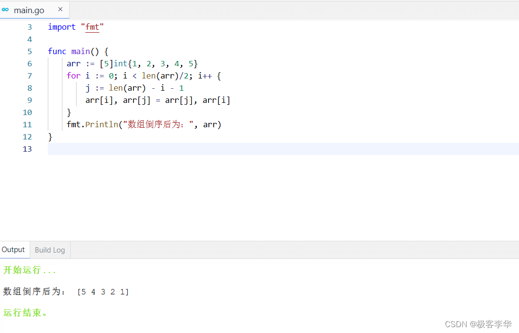 fmt.Println("数组倒序后为:", arr)