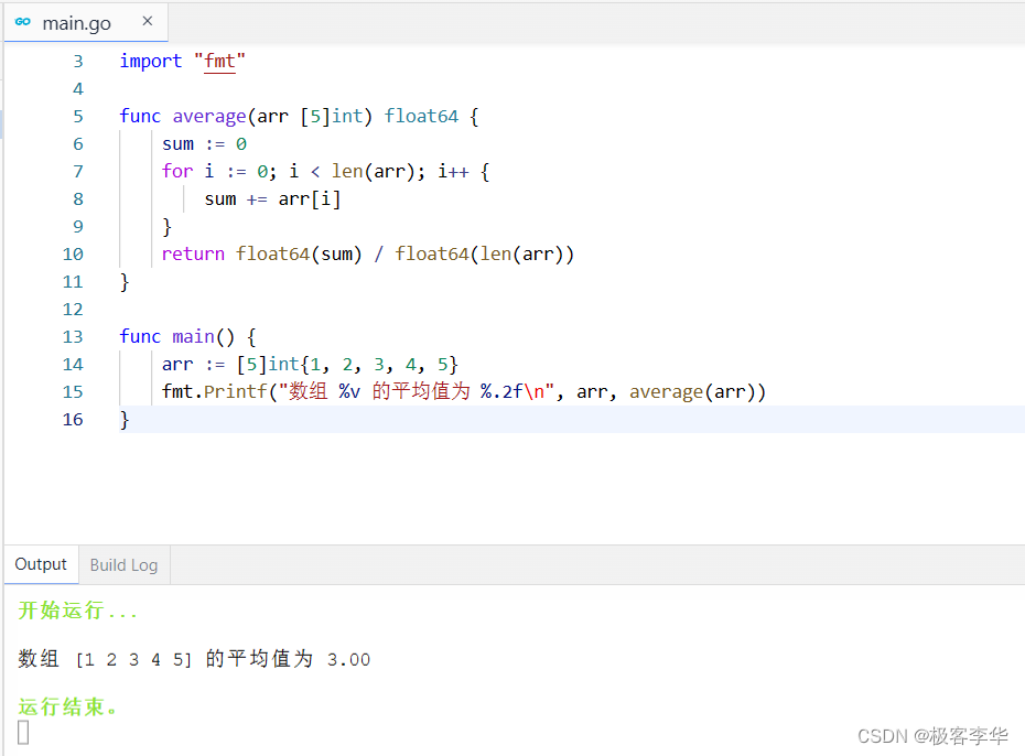 fmt.Printf("数组 %v 的平均值为 %.2f\n", arr, average(arr))