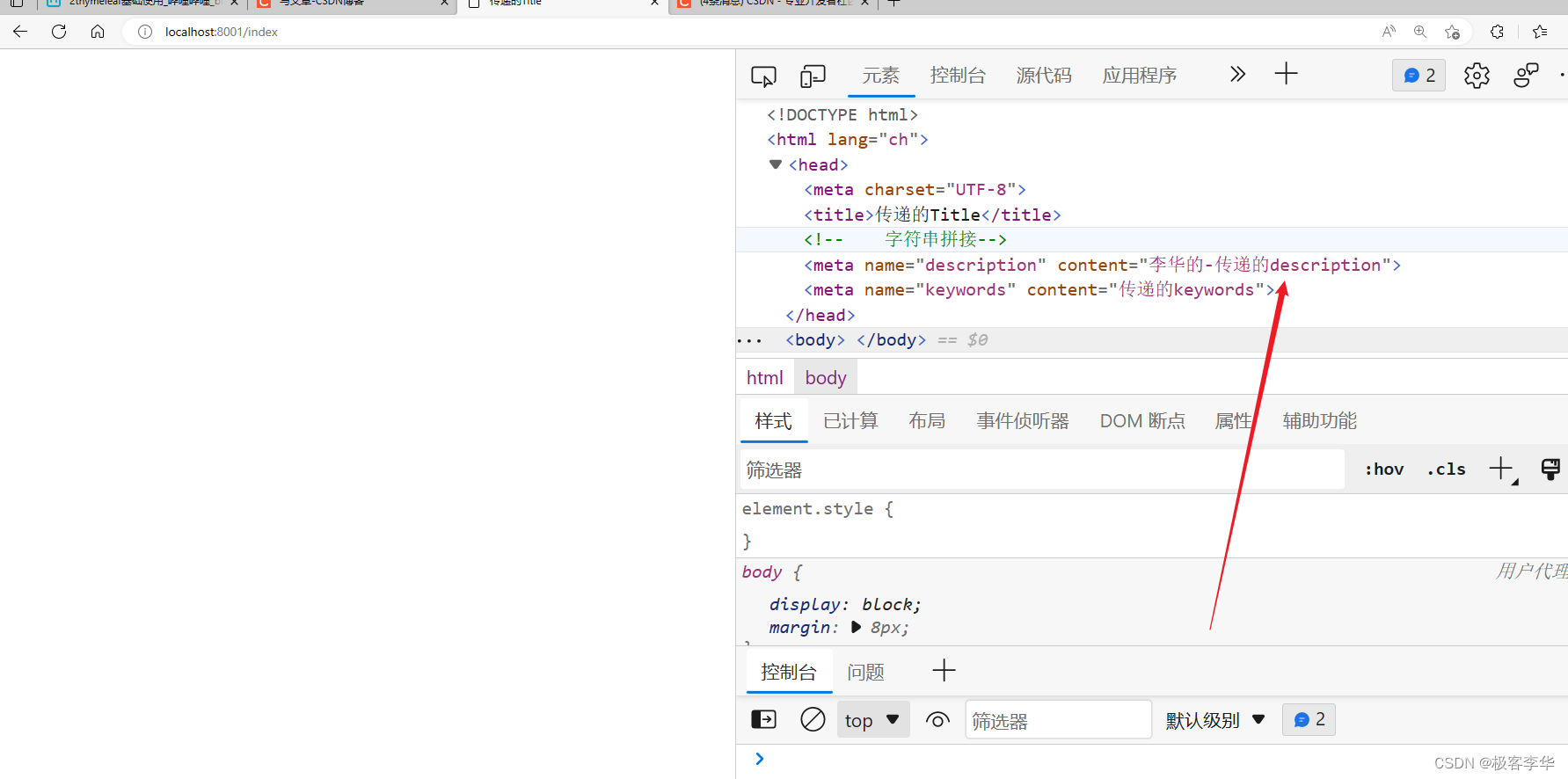 运行结果 通过运行的结果和观察源码,我们都可以发现,这个后端传递给前端的值,在前端生效了。