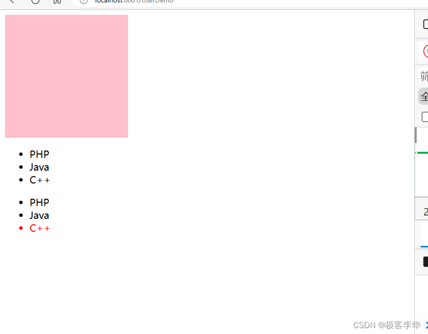 其他效果,让最后一个列表变成红色。 index.html