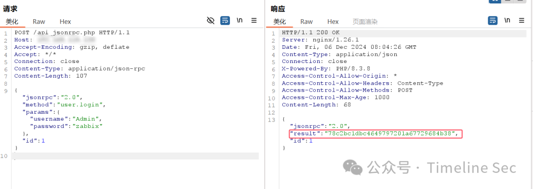 对api_jsonrpc.php进行POST请求,根据用户名密码构建json数据,获取对应的值