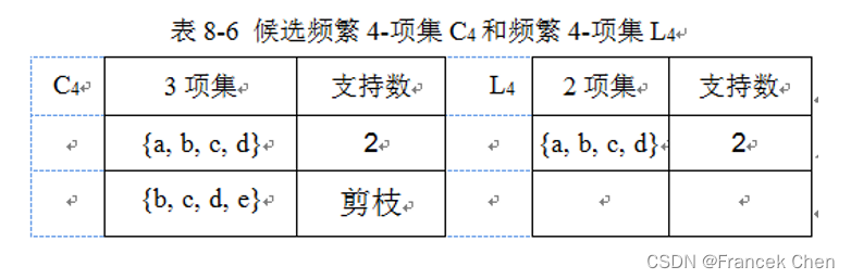 中的最大频繁项集,一般从项最多的频繁项集开始,检查它是否包含在某个频繁项集之中。 (1)因为