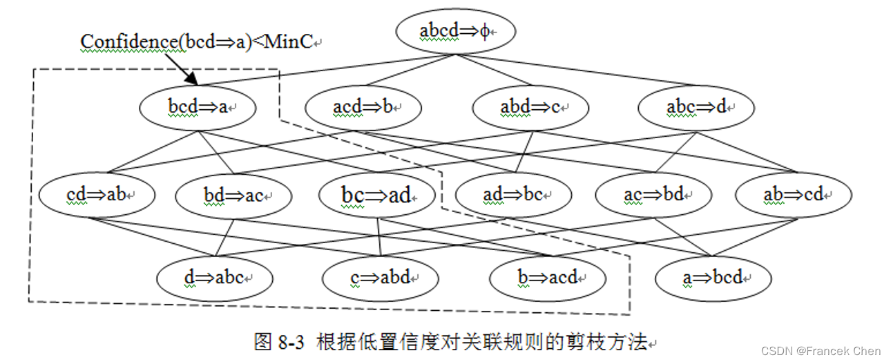 产生关联规则的格结构。如果格中任意结点对应关联规则的置信度低于