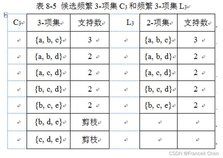算法8-2 Apriori算法之强关联规则生成法 输入:所有频繁项集构成的集合