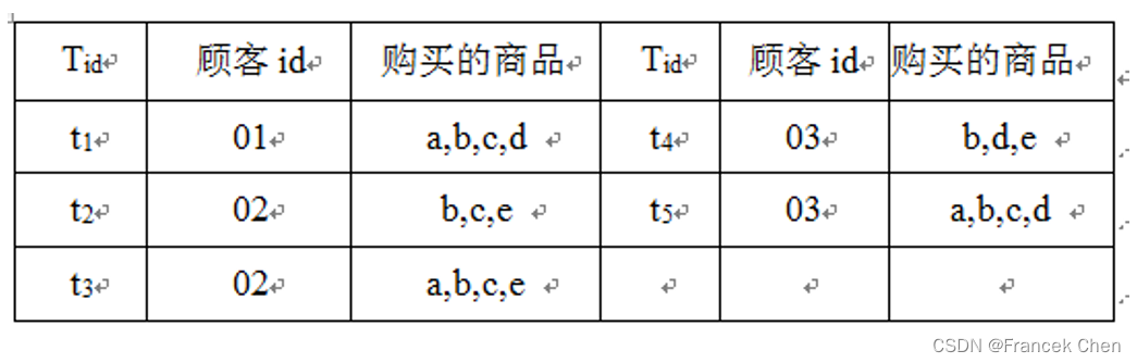 就代表某个顾客一次购买的所有商品编号或商品名称。