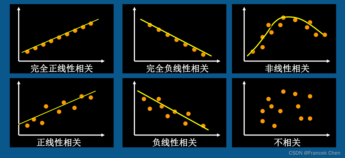 [-1,1]- 1表示完全正相关,-1表示完全负相关,0表示不相关