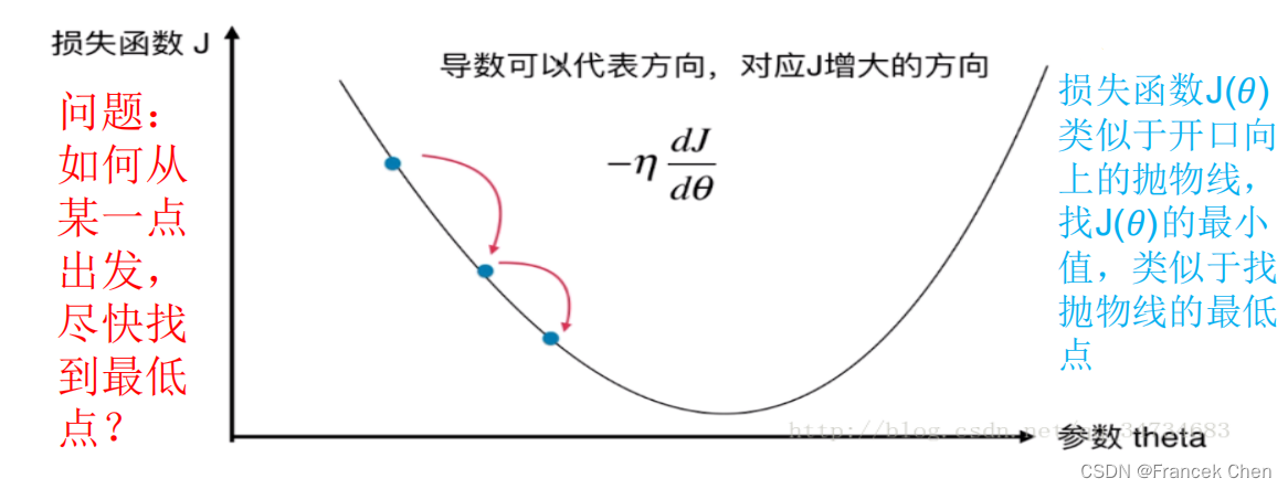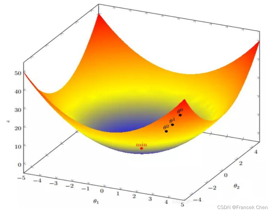 梯度下降算法是一种求局部最优解的数值计算方法,该方法的整体思路是通过迭代来逐渐调整参数使得损失函数达到最小值。