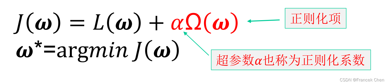 J(\omega)=\frac{1}{2m}\sum_{i=1}^m(f(\omega,x_i)-y_i)^2+\frac{\alpha}{2}\lVert\omega\rVert_2^2\omega^*=argminJ(\omega) 其中
