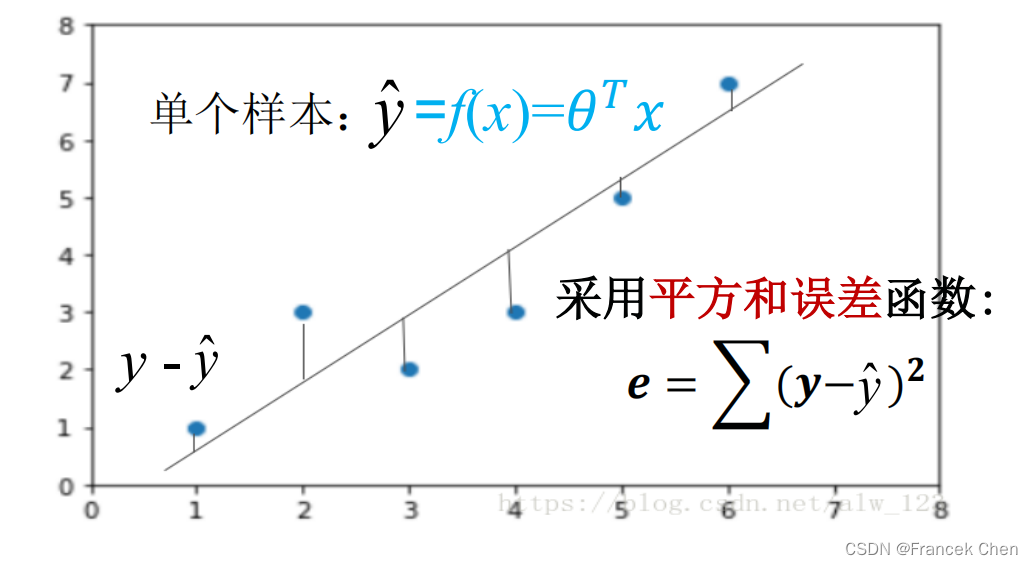 \hat{y}^{(i)}=\theta_0+\theta_1X_1^{(i)}+\theta_2X_2^{(i)}+...+\theta_nX_n^{(i)}5、补充:均方误差(MSE)函数