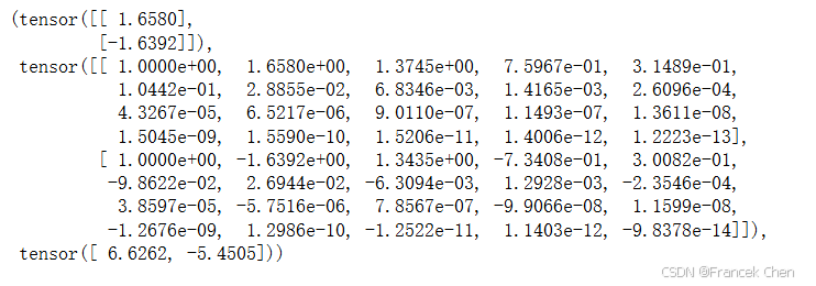 torch.float32) for x in [true_w, features, poly_features, labels]]