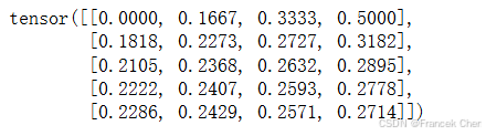 例如,由于sum_A在对每行进行求和后仍保持两个轴,我们可以通过广播将A除以sum_A。