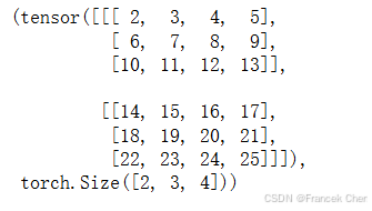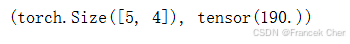 len(x)4 当用张量表示一个向量(只有一个轴)时,我们也可以通过.shape属性访问向量的长度。形状(shape)是一个元素组,列出了张量沿每个轴的长度(维数)。对于只有一个轴的张量,形状只有一个元素。