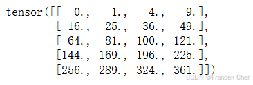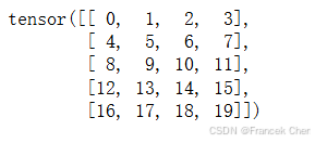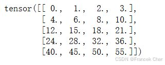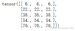 如果我们想沿某个轴计算A元素的累积总和,比如axis=0(按行计算),可以调用cumsum函数。此函数不会沿任何轴降低输入张量的维度。
