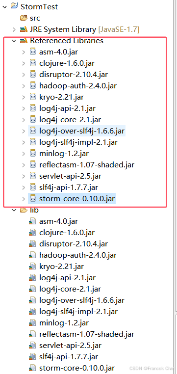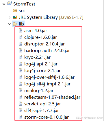 其次,将 Storm 安装包的 lib 目录内如下 jar 包导入到开发工具: