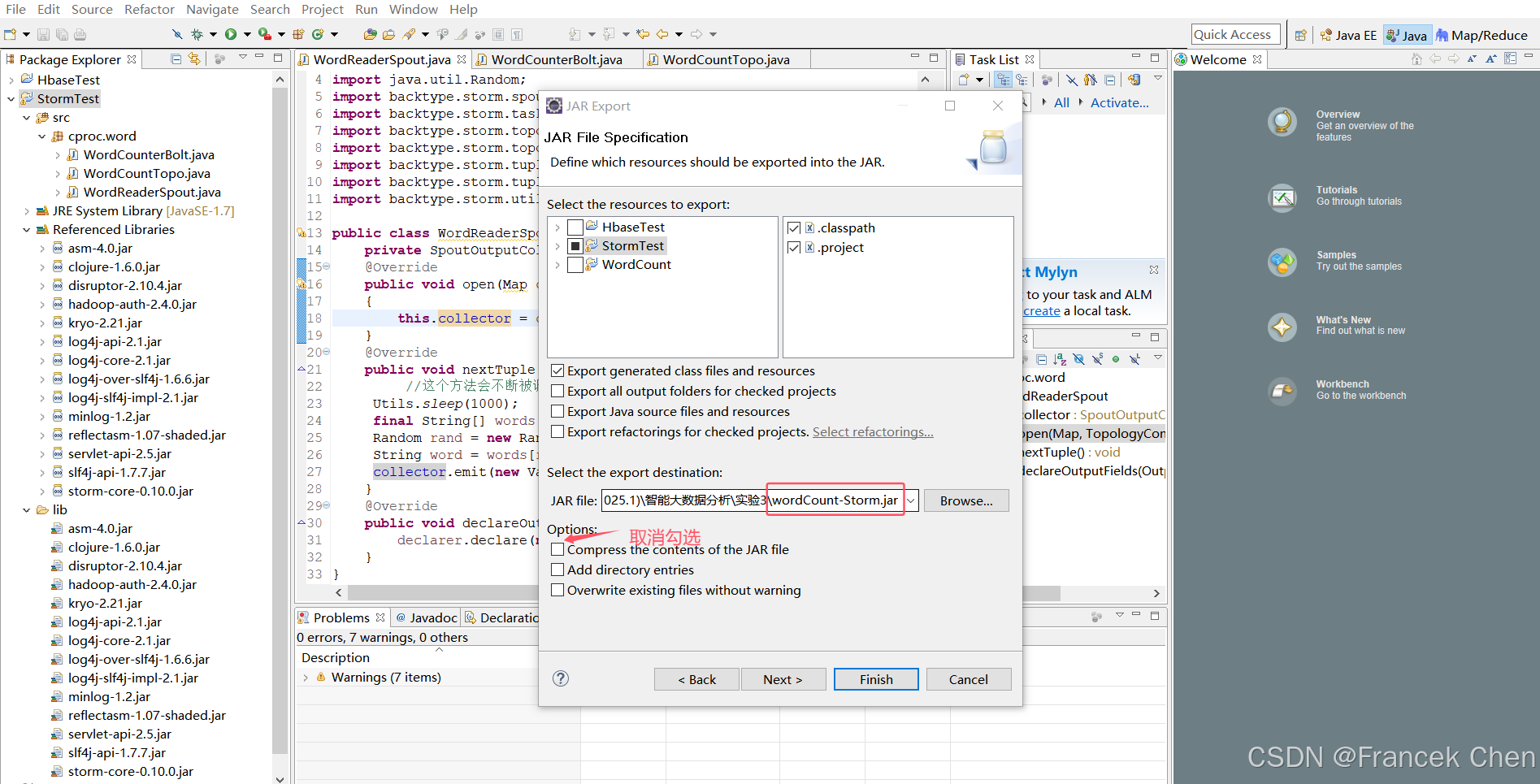 (打包的时候不要包含 storm 中的 jar,不然会报错的,将无法运行,即:wordCount-Storm.jar