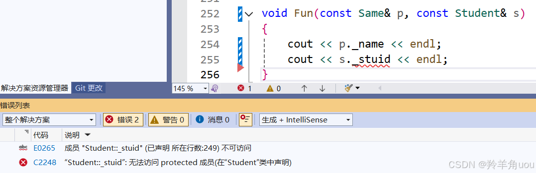 像上面的代码,Fun函数只能访问Same基类的成员变量_name,_stuid是访问不到的。