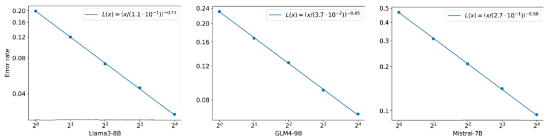 研究人员在 GSM8K 数据集上评估了 FoT 在不同基模型上的性能。图 3 中的实验结果表明,基于不同的大语言模型 Llama3-8B,Mistral-7B 和 GLM-4-9B,都存在类似的 scaling law:FoT 中的树数量越多,带来的准确率提升越显著。