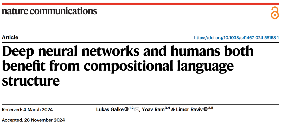 Galke L, Ram Y, Raviv L. Deep neural networks and humans both benefit from compositional language structure[J]. Nature Communications, 2024, 15(1): 10816.