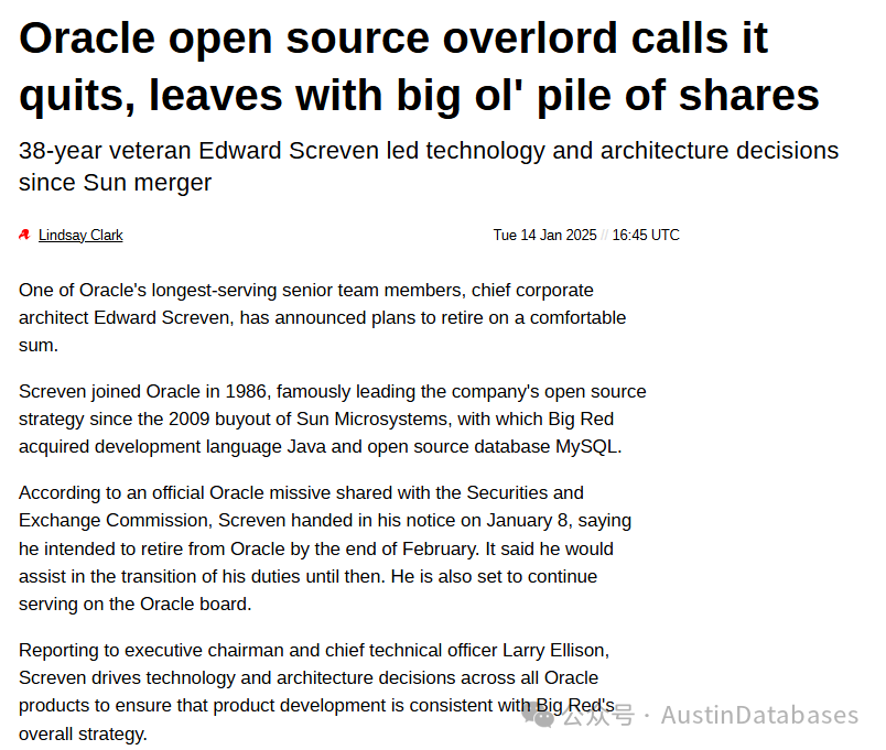第7条新闻 ORACLE 负责开源的38年的负责人退休