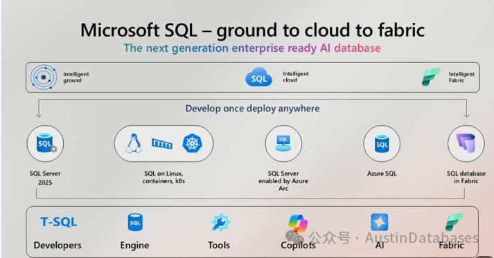 SQL SERVER 将再接再厉,2025 年伊始,你们中的许多人都在关注新项目、新应用,试图确定如何将人工智能融入业务,对数据资产进行现代化改造,或者考虑进行升级或迁移到云端。在你们考虑各种选择时,让我们来看看 2025 年微软针对 SQL Server、Azure SQL、Fabric 中的 SQL 数据库、Copilots、工具以及开发人员体验的新版本和功能的整体情况。