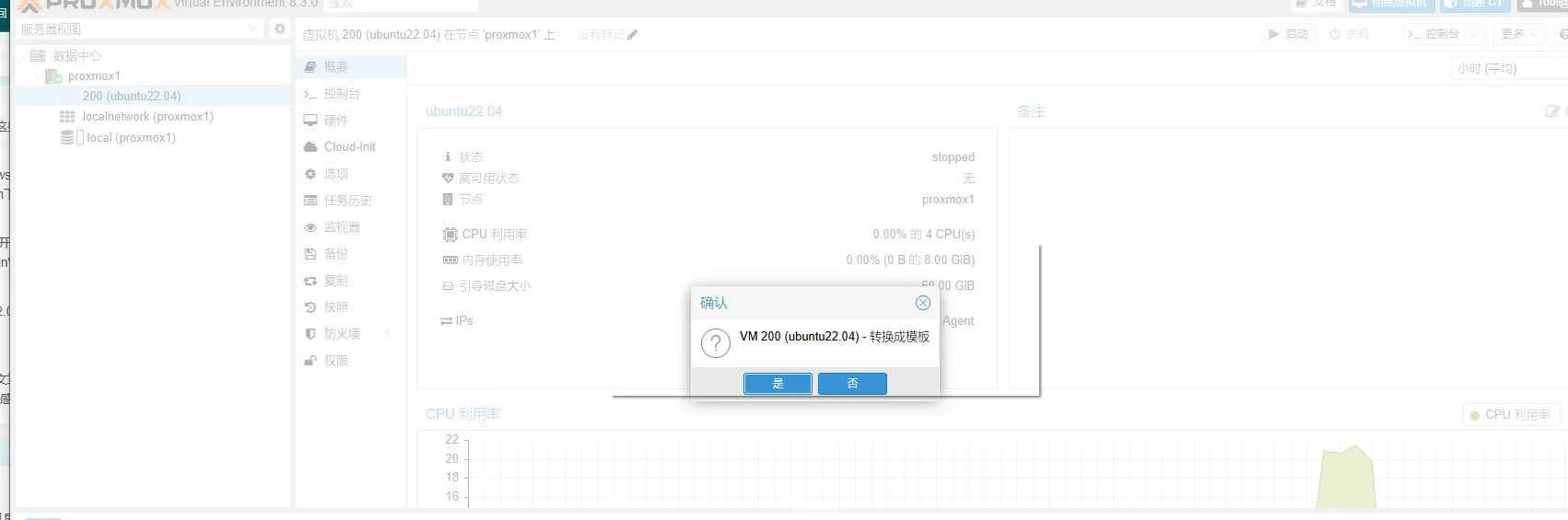 等待虚拟机关机右击id为200虚拟机,转换为模版: