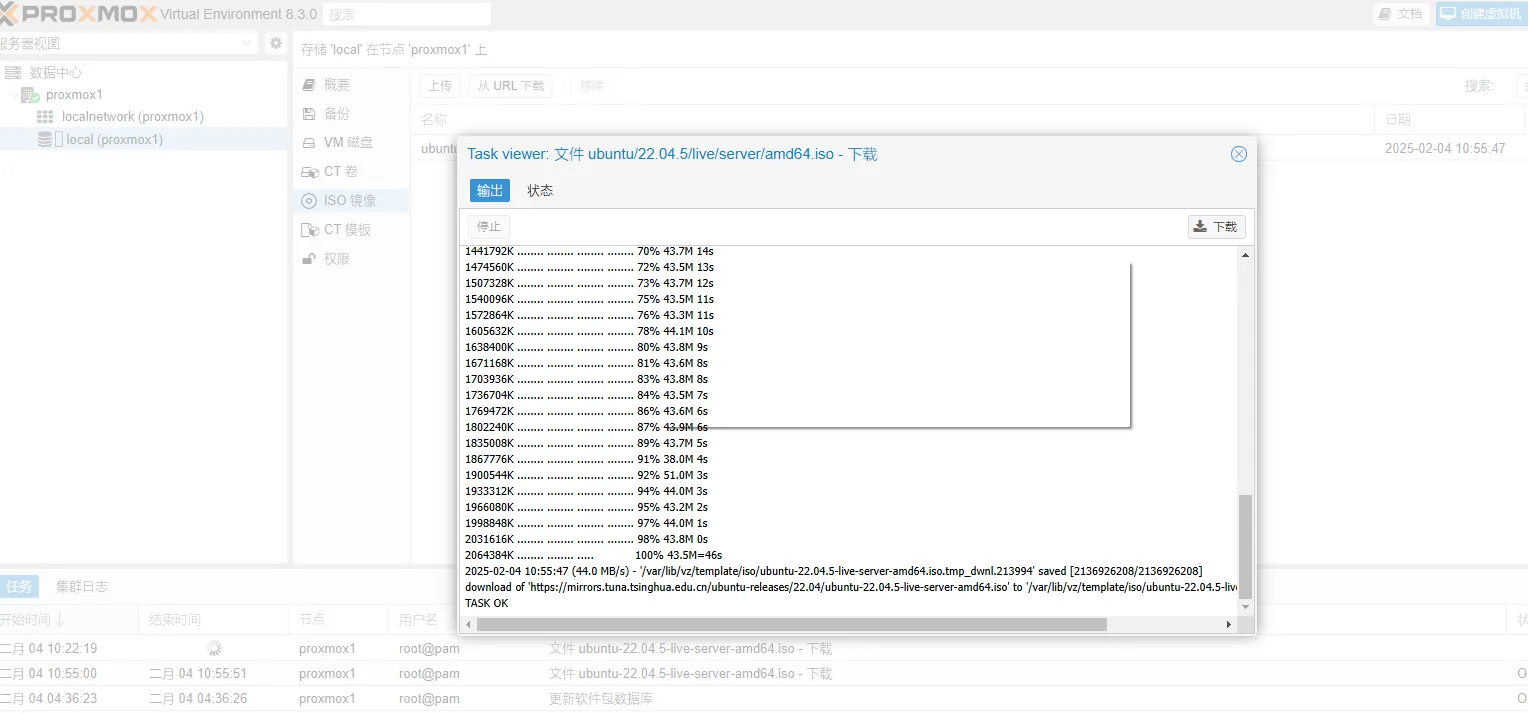 输入url:https://mirrors.tuna.tsinghua.edu.cn/ubuntu-releases/22.04/ubuntu-22.04.5-live-server-amd64.iso,点击查询网址-下载: