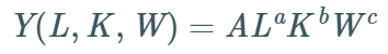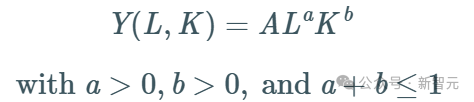 其中a+b+c=1,这个条件确保所有要素都具有规模报酬不变特性(这里我们假设a>0,b>0,c>0,分别代表各要素的产出弹性)。