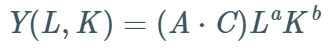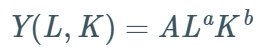 其中,Y表示国内生产总值(GDP),A表示全要素生产率(或技术水平),L和K分别代表两个基本生产要素:劳动力和资本。