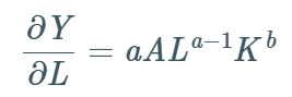 工人的实际工资可以通过对产出相对于劳动力的偏导数来计算,表达式如下: