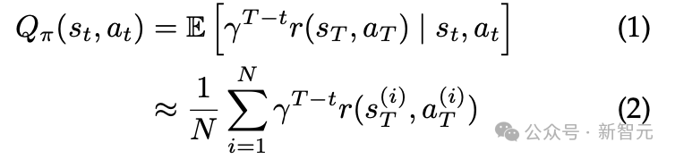 可以通过采样N条推理链直到终端状态,如公式(2)所示,并平均通过深度折扣的终端奖励来近似Q值。