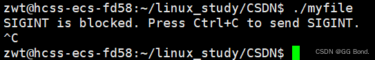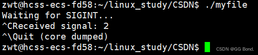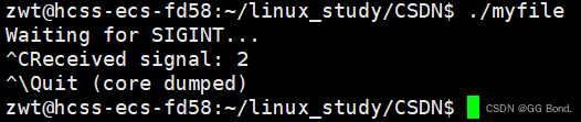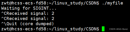 }在上面的代码中,进程会一直运行并等待 SIGINT 信号(通常由按下 Ctrl+C 触发)。一旦进程接收到 SIGINT 信号,内核会将其递送到进程,并触发信号处理函数 signal_handler