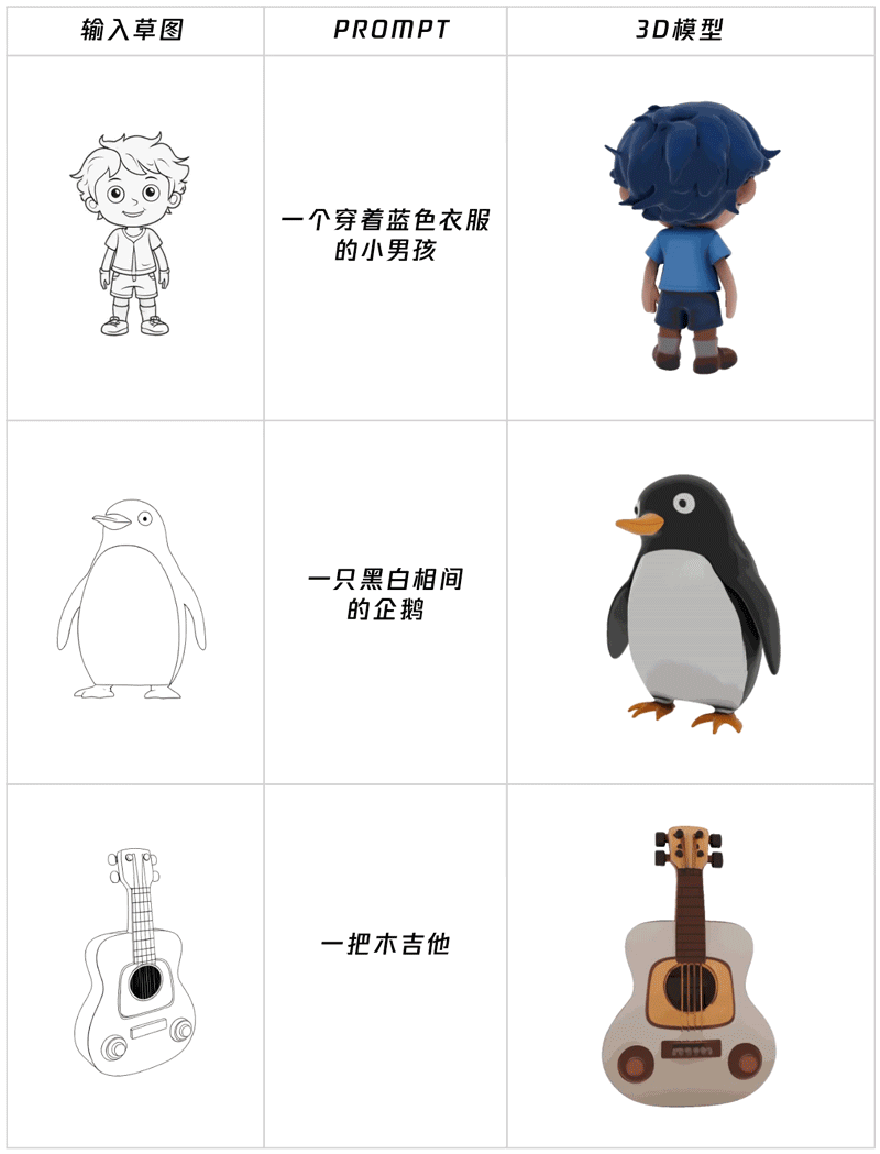当你画了一张草图,可以通过提示词的配合,快速生成3D模型。
