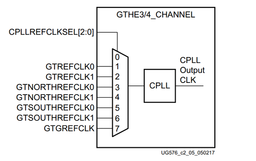 每一个GTXE2_CHANNEL 原语包含一个TX,一个RX和一个CPLL。