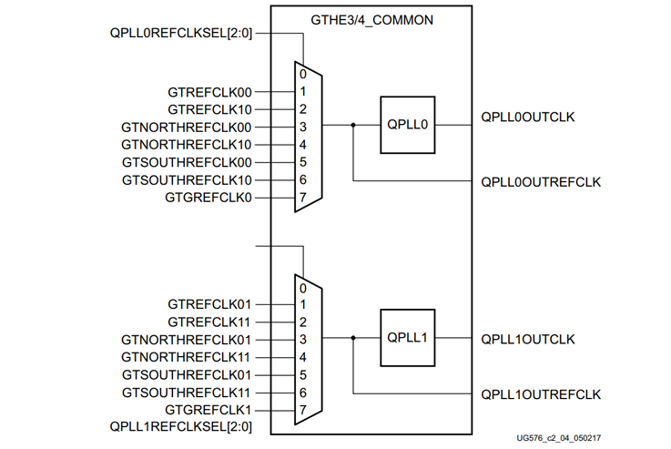 GTXE2_COMMON原语包含一个LC-tank PLL(QPLL)。