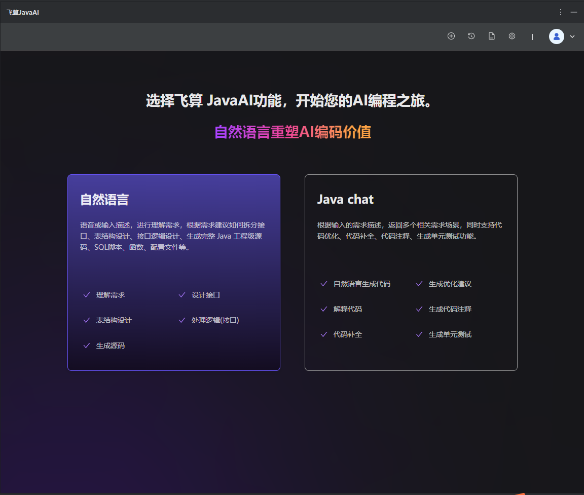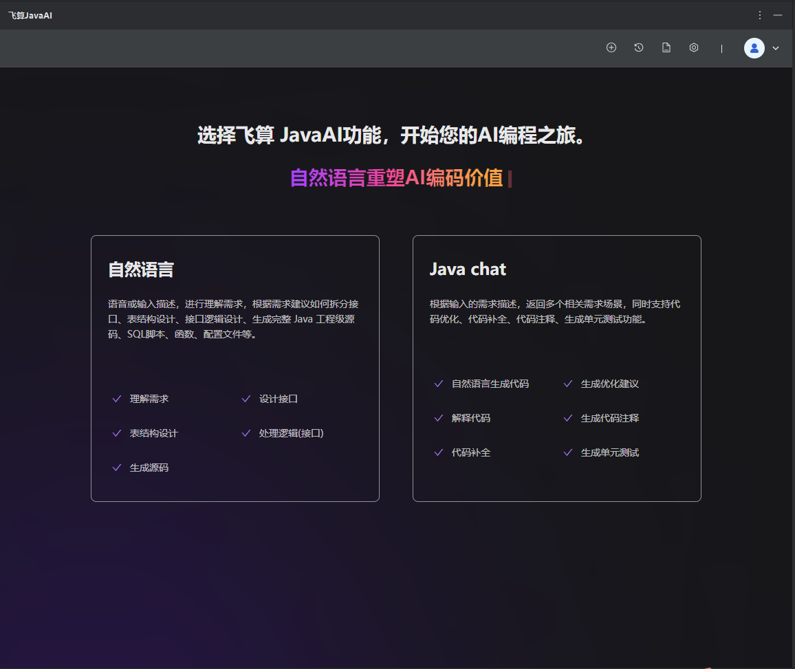 自然语言生成代码更是飞算JavaAI 的一大亮点。对于许多非专业的编程人员或者刚接触 Java 开发的新手来说,编写代码就像是在解一道复杂的谜题。而有了飞算JavaAI,他们只需用通俗易懂的自然语言描述自己想要实现的功能,飞算JavaAI 就能自动将其转换为高质量的 Java 代码。比如,开发者输入 “创建一个用户登录验证的功能,包括用户名和密码的校验”, 飞算JavaAI 就能快速生成相应的代码逻辑,包括数据库查询、密码加密比对等一系列操作的代码,这无疑极大地降低了 Java 编程的门槛,使更多人能够参与到软件开发的过程中来。