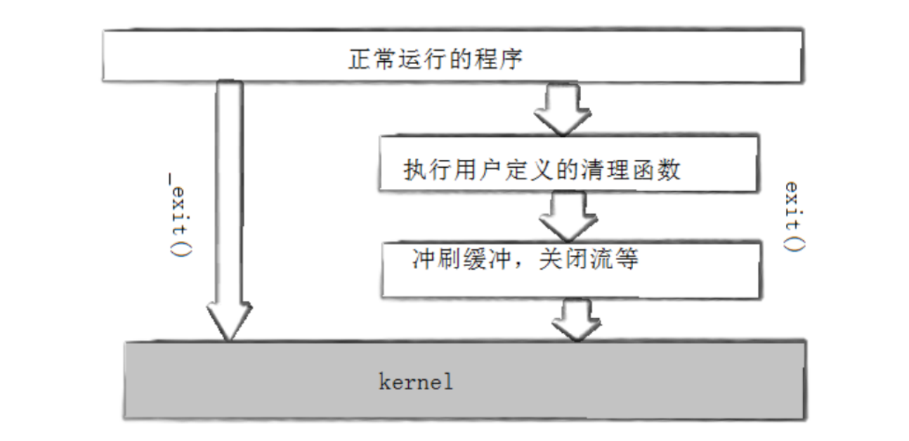 atexit() 注册的函数)。_exit() 终止进程。#include <stdio.h>