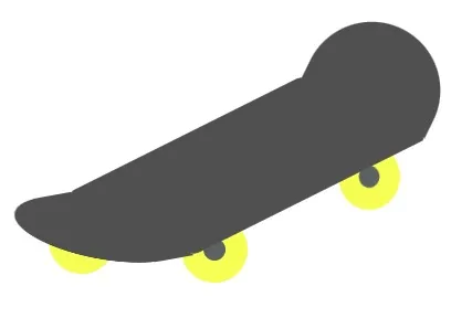先来看滑板的表情🛹,在对比左侧的图片,是不是还挺像的。滑板有两部分组成,板子和轮子。为了实现板子翘起的效果,两头使用了两个半圆。再设置Y轴和X轴的偏移角度,便可以呈现不同的翘起效果。