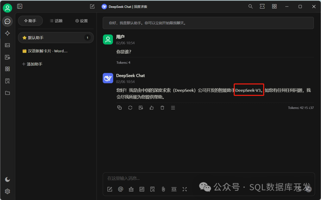 然后输入“你是谁?”,回答正确的模型名称即表示是正版的啦。