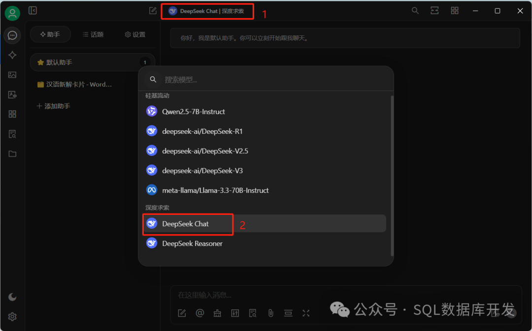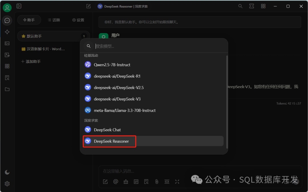 打开CherryStudio对话界面,找到DeepSeek模型。