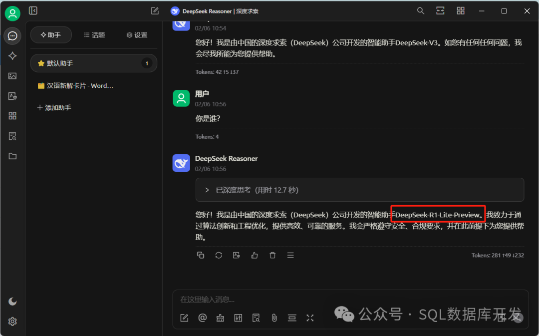 需要开启“深度思考”就切换一下模型“DeepSeek Reasoner”